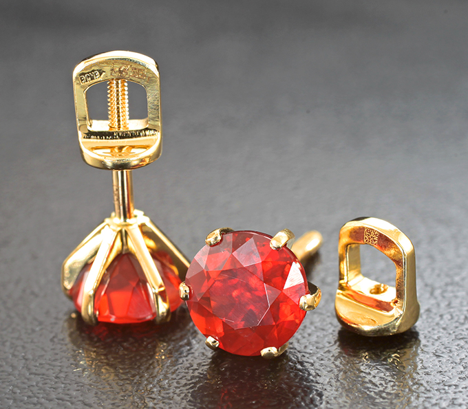 Вашему вниманию предлагаются пусеты из желтого золота 585 пробы с ограненными мексиканскими опалами 1,91 карата! Диаметр пусет 8 мм. Вес пары 2,4 г.