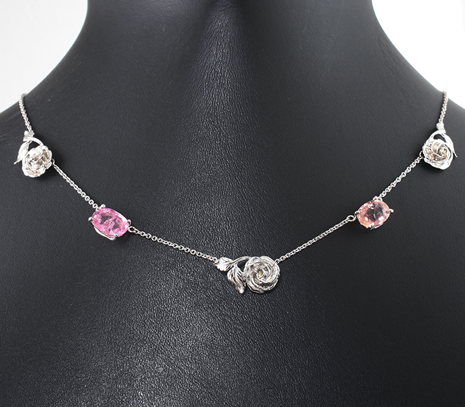 Вашему вниманию предлагается колье из белого золота 585 пробы с пурпурно-розовыми турмалинами! Длина 435 мм, ширина 11 мм. Вес изделия 9,52 г. Ниже приводятся ювелирные характеристики вставок.