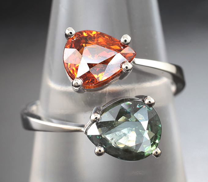 Кольцо cо спессартином 1,73 карата и полихромным сапфиром 1,35 карата