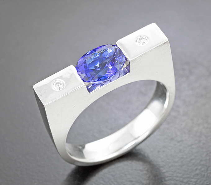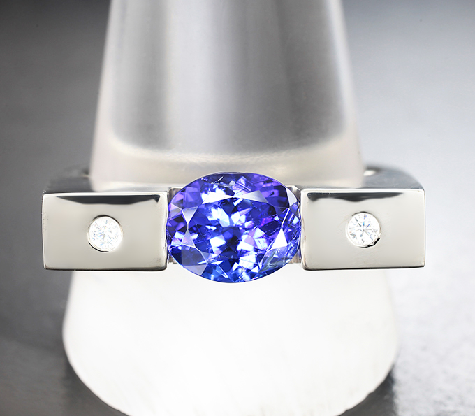 Кольцо с танзанитом топового цвета 1,94 карата и муассанитами
