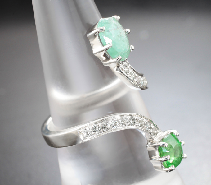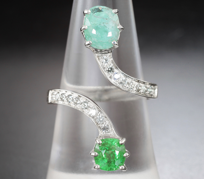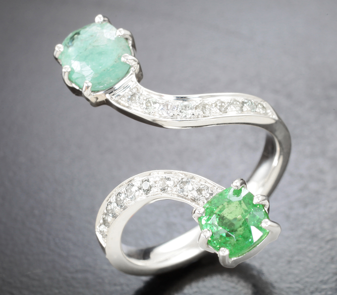 Кольцо с цаворитом гранатом 1,03 карата, параиба турмалином 1,6 карата и лейкосапфирами
