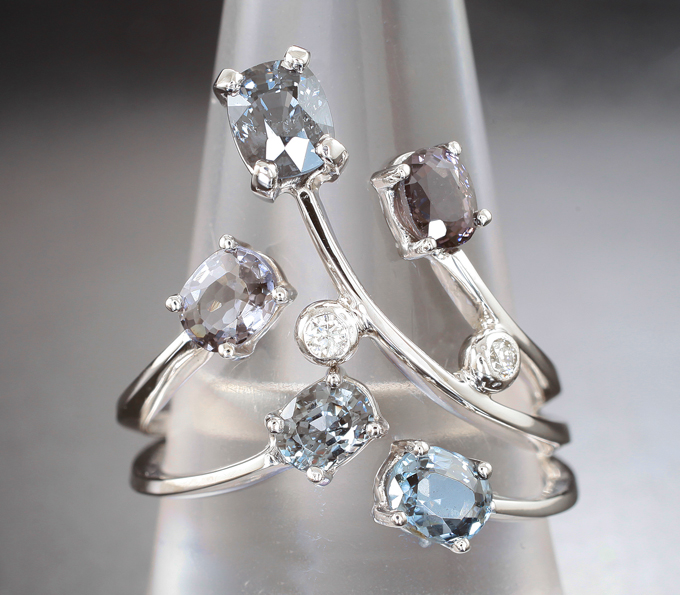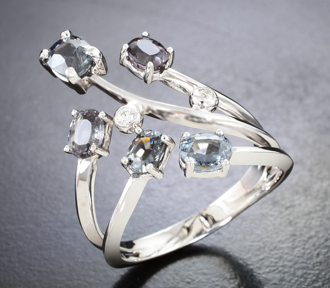 Кольцо cо шпинелями пастельных цветов 2,3 карата и бриллиантами