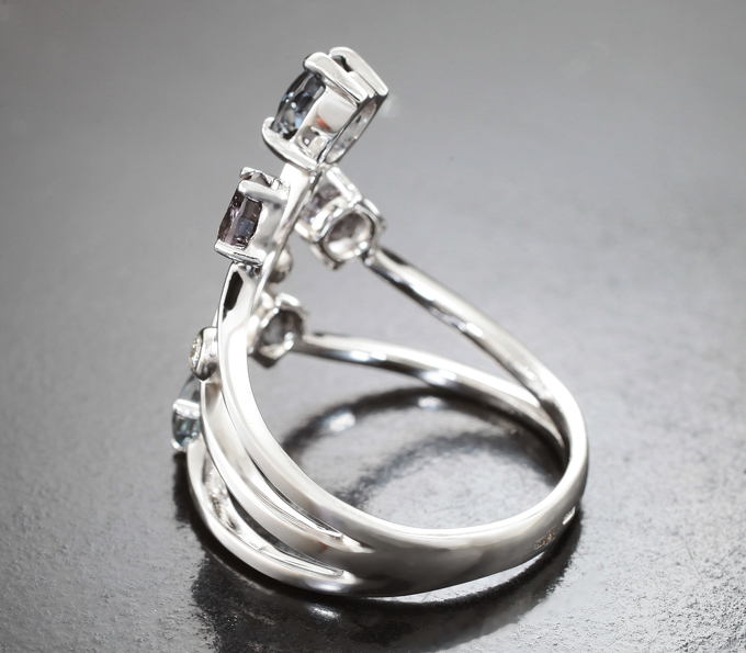 Вашему вниманию предлагается кольцо из белого золота 585 пробы cо шпинелями пастельных цветов и бриллиантами! Диаметр дополнительной инкрустации 2 мм. Площадка 23 х 16 мм, высота 5 мм. Вес изделия 4,85 г. Размер 18. Ниже приводятся ювелирные характеристики вставок.
