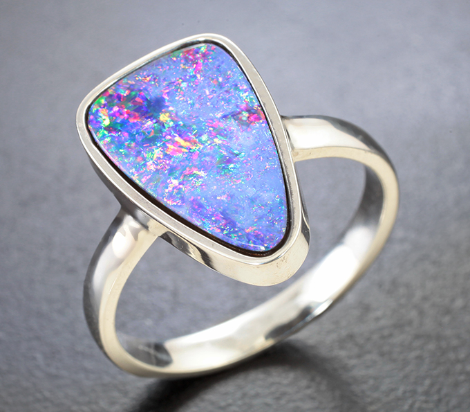 Вашему вниманию предлагается кольцо из стерлингового серебра (925 проба) c австралийским дублет опалом! Основные цвета опалесценции: красный, желтый, зеленый, синий и фиолетовый. Площадка 17 х 11 мм, высота 3 мм. Вес изделия 3,57 г. Размер 18,5. Ниже приводятся ювелирные характеристики вставки.
