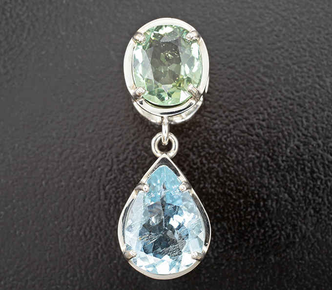 Кулон с мятно-зеленым апатитом 2,43 карата и аквамарином 2,8 карата