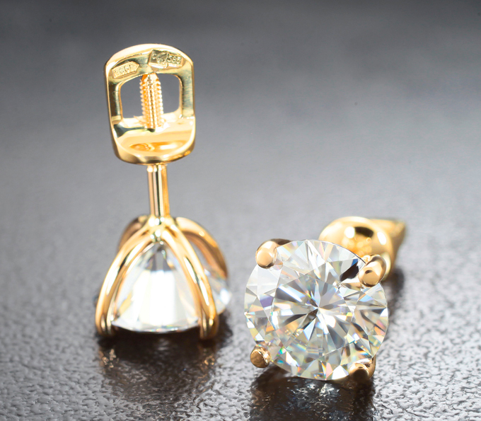 Вашему вниманию предлагаются пусеты из желтого золота 585 пробы с муассанитами! Диаметр вставок 8 мм. Вес пары 2,66 г. Ниже приводятся ювелирные характеристики вставок.