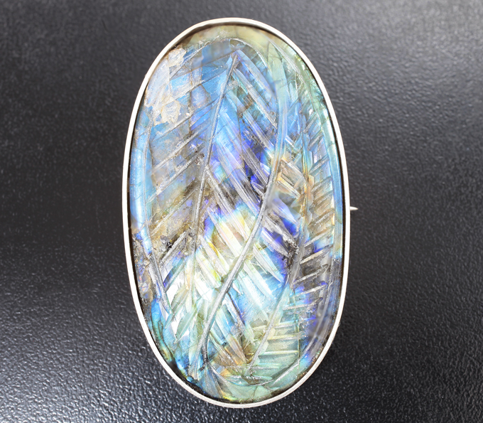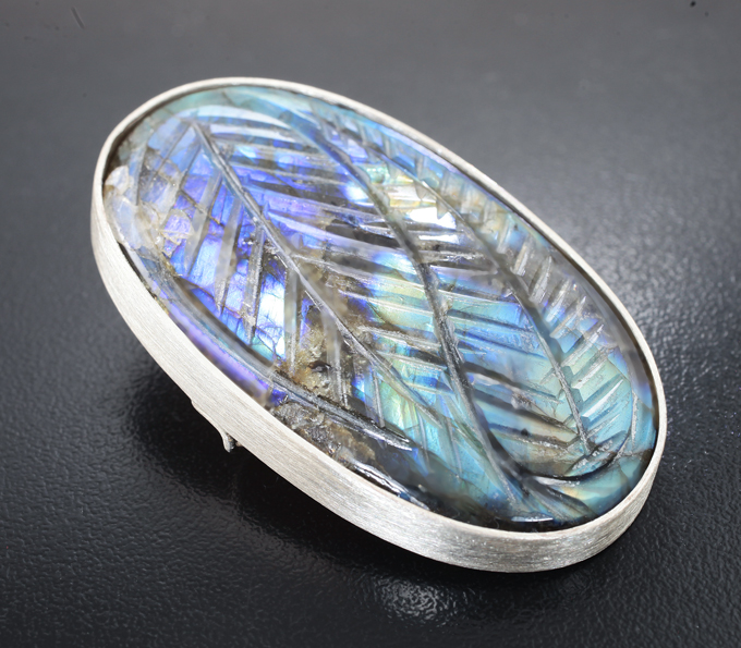 Брошь с крупным резным лабрадоритом 126,49 карата