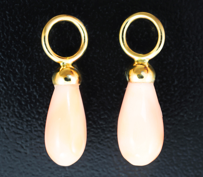 Вашему вниманию предлагаются подвесы для серег из желтого золота 585 пробы с solid кораллом! Размеры изделия 19 х 5 мм. Вес пары 1,6 г. Ниже приводятся ювелирные характеристики вставок.