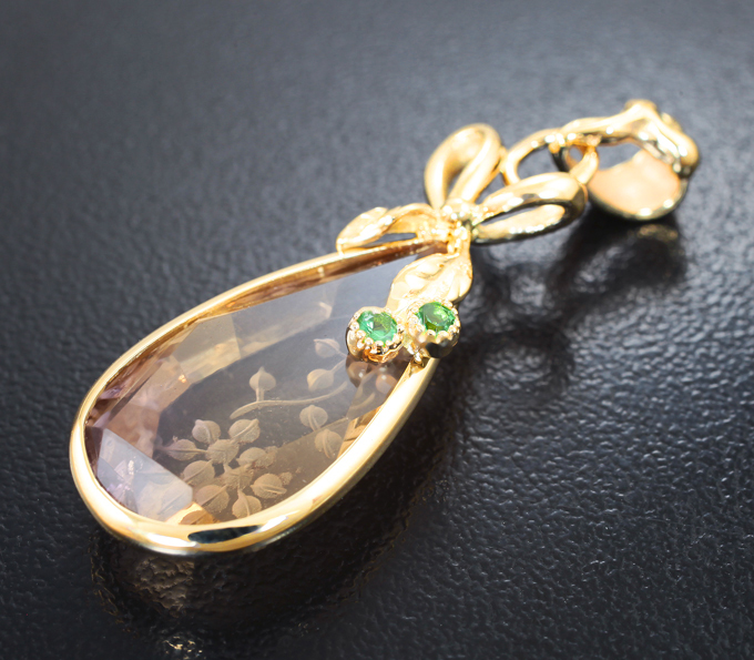 Кулон с резным аметрином 12,83 карата и демантоидами гранатами