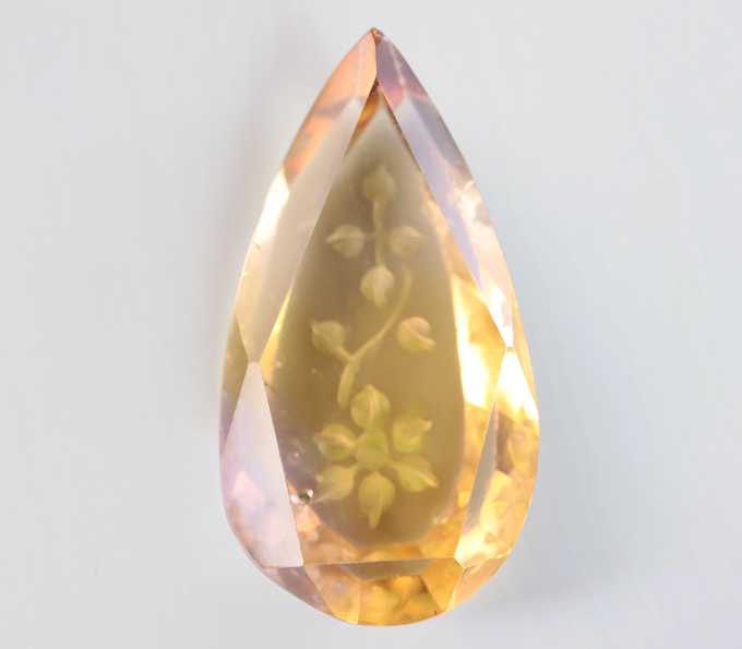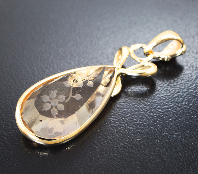 Вашему вниманию предлагается кулон из желтого золота 585 пробы с резным аметрином 12,83 карата и демантоидами гранатами! Диаметр дополнительной инкрустации 2 мм. Площадка 42 х 14 мм. Вес изделия 5,55 г. Ниже приводятся ювелирные характеристики вставки.