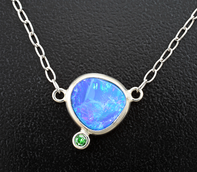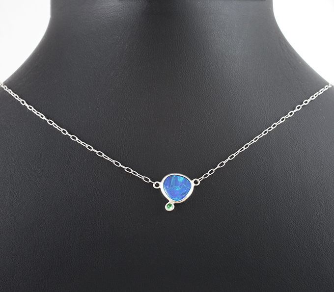 Колье с австралийским дублет опалом 1,84 карата и цаворитом