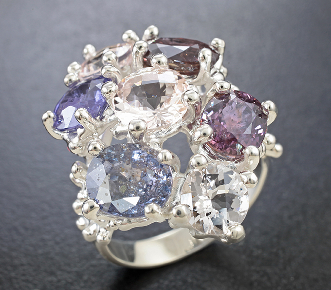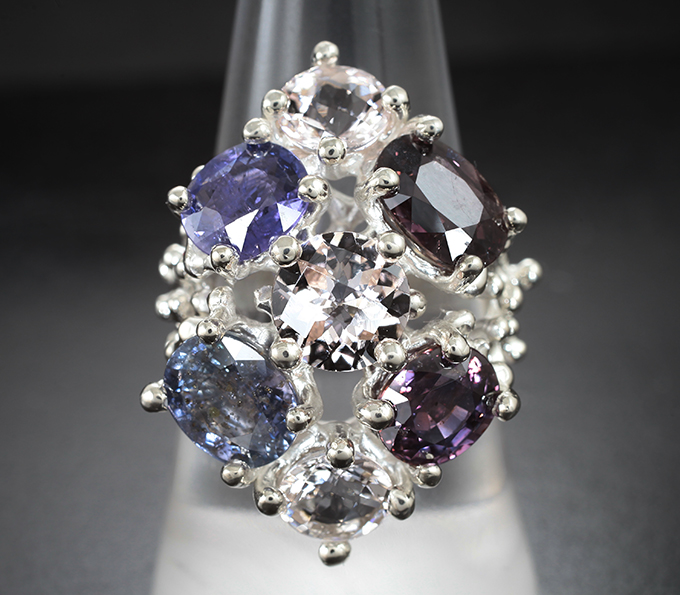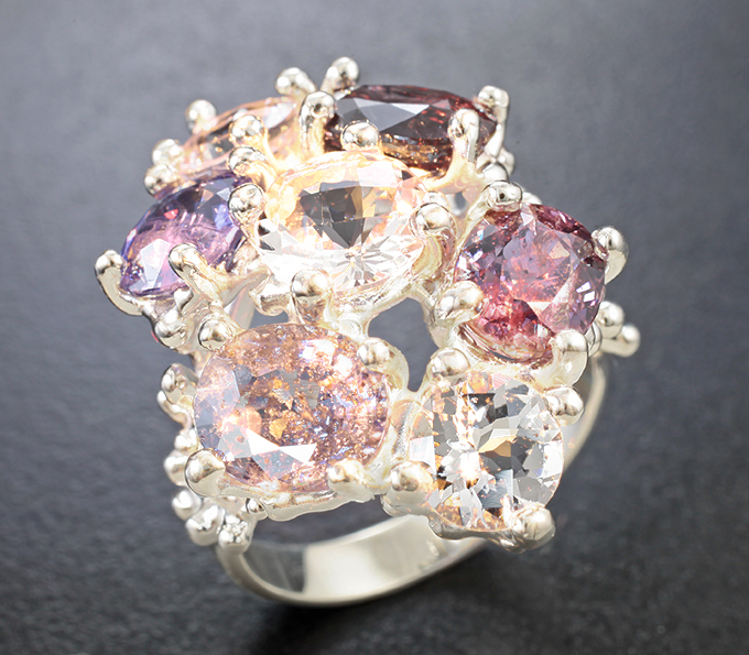 Кольцо с сапфирами со сменой цвета 7,1 карата и морганитами