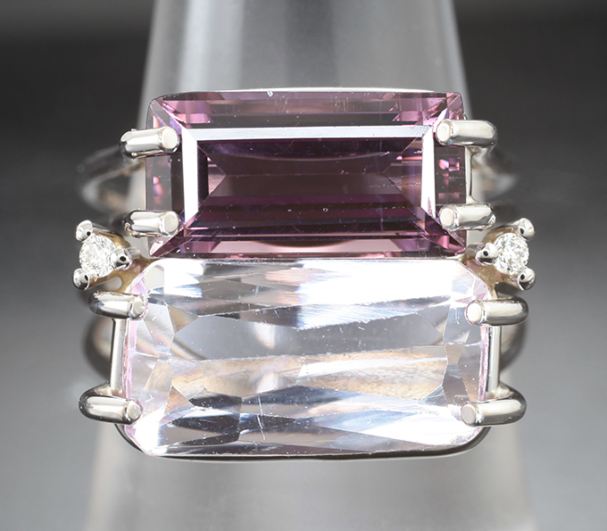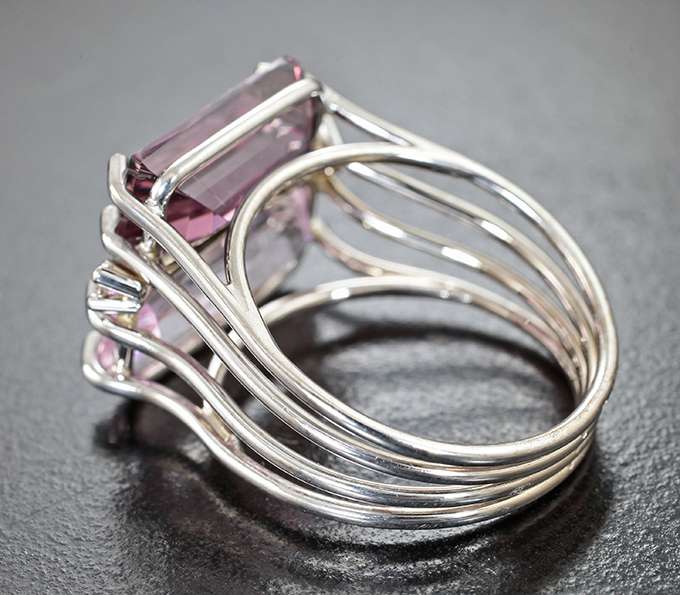 Кольцо cо скаполитом редкой огранки 3,25 карата, кунцитом и бриллиантам