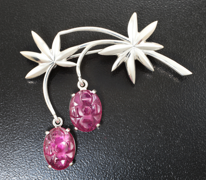 Брошь с резными рубинами 7,7 карата