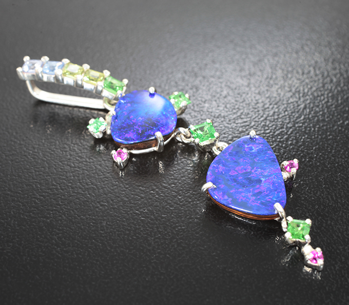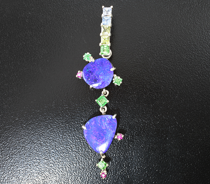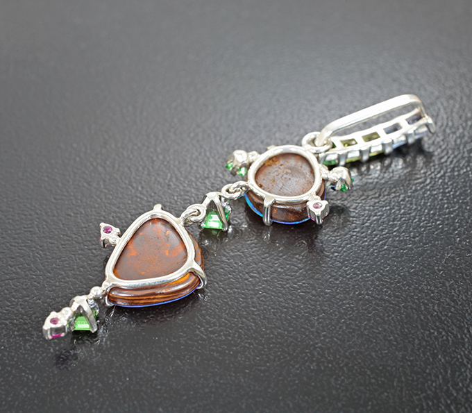 Кулон с австралийскими дублет опалами 5,59 карата, разноцветными сапфирами, рубинами и цаворитами