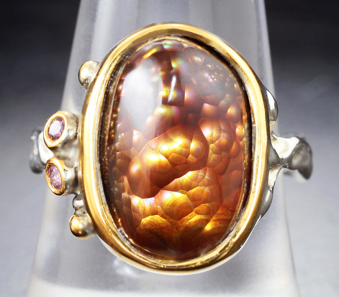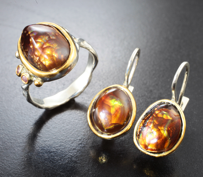 Комплект с мексиканским огненным агатом 21,52 карата и розовым сапфирами