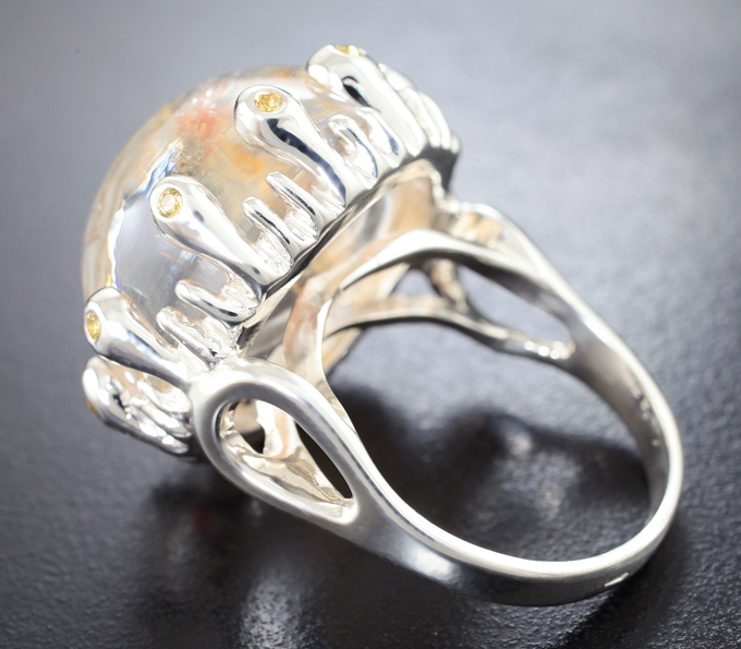 Кольцо с рутиловым топазом 57,93 карата и сапфирами
