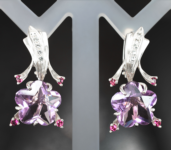 Серьги с аметистами авторской огранки 13,74 карата и сапфирами