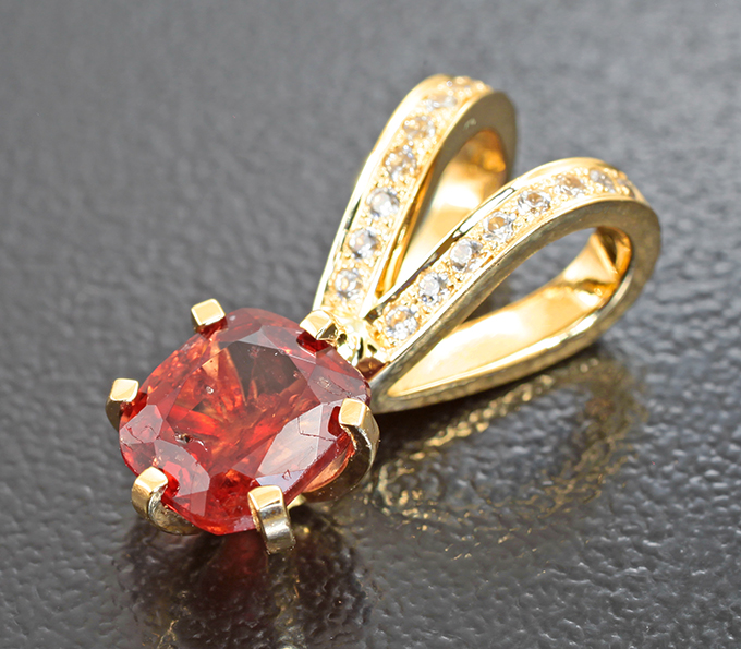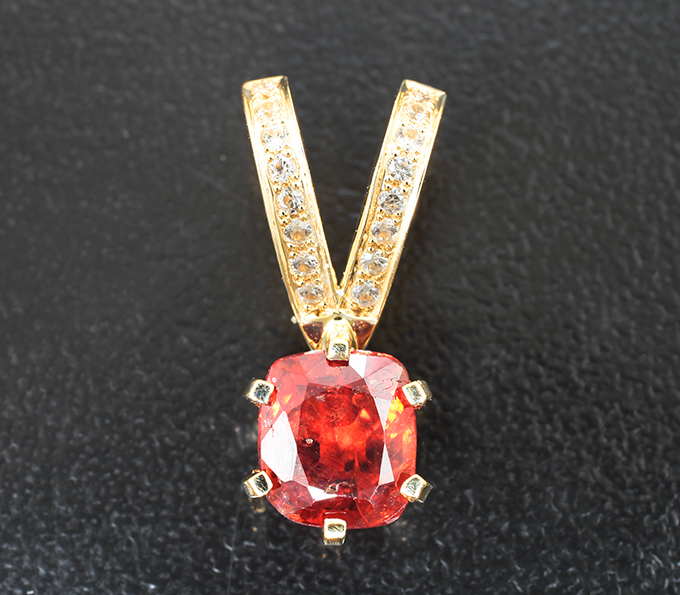 Кулон с красновато-оранжевой шпинелью 1,64 карата и лейкосапфирами