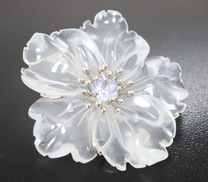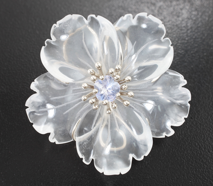 Вашему вниманию предлагается кулон из белого золота 585 пробы с резным бесцветным кварцем и сапфиром! Площадка кулона 41 х 39 мм. Вес изделия 15,01 г. Ниже приводятся ювелирные характеристики вставки.