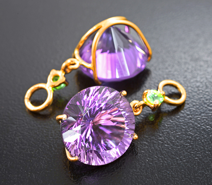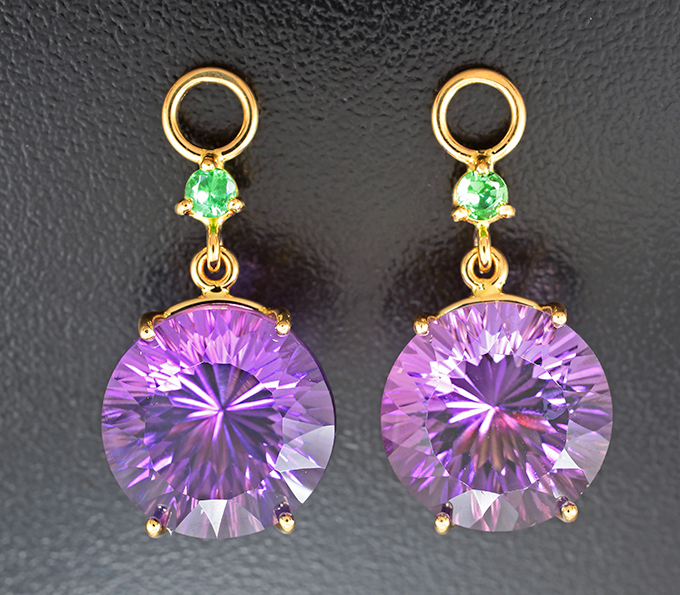 Подвесы для серег с аметистами лазерной огранки 21,08 карата и цаворитами