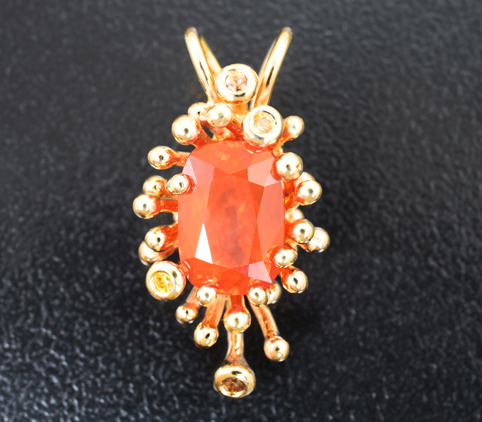 Вашему вниманию предлагается кулон из желтого золота 585 пробы с ограненным мексиканским опалом и сапфирами! Диаметр дополнительной инкрустации 1,5 мм и 1,6 мм. Площадка 23 х 12 мм. Вес изделия 2,9 г. Ниже приводятся ювелирные характеристики опала.