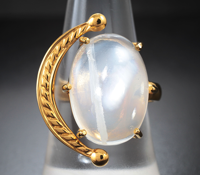 Кольцо с редким лунным камнем с рутилом 13,4 карата