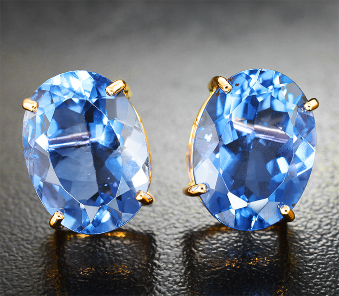 Пусеты с крупными флюоритами со сменой цвета 17,92 карата