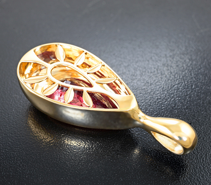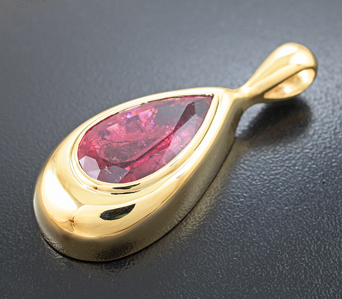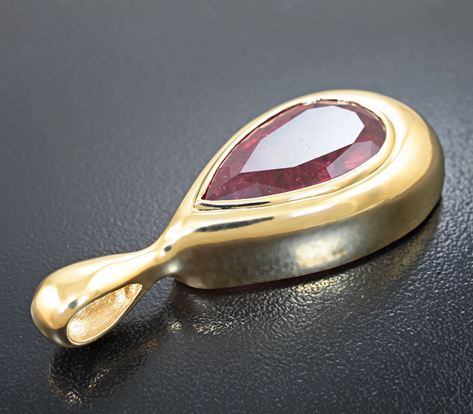 Вашему вниманию предлагается кулон из желтого золота 585 пробы с крупным рубеллитом! Размеры кулона с петлей 50 х 19 мм. Вес изделия 18,21 г. Ниже приводятся ювелирные характеристики вставки.