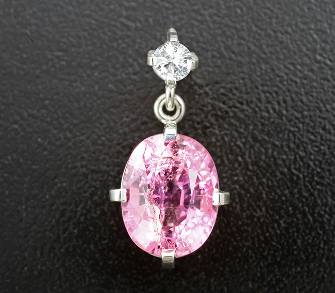 Кулон с насыщенно-розовым турмалином 4,3 карата и лейкосапфиром
