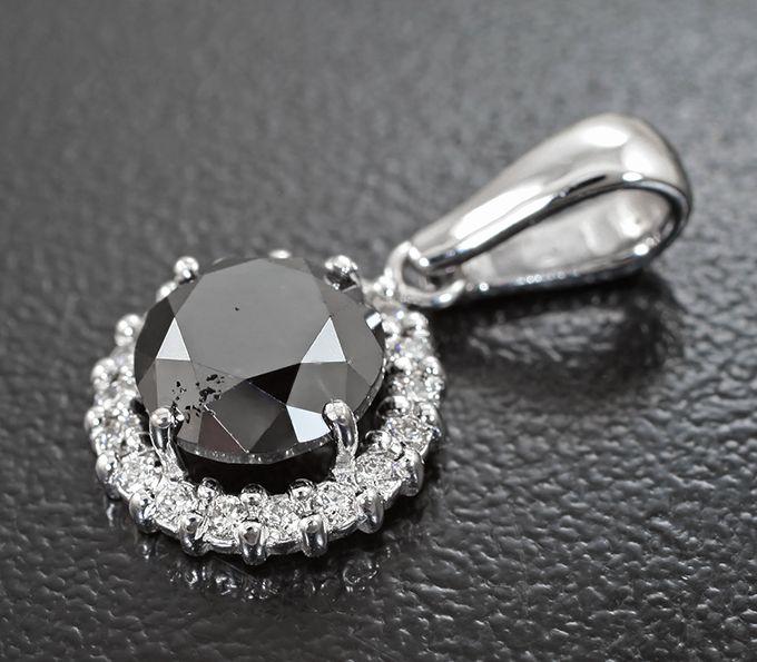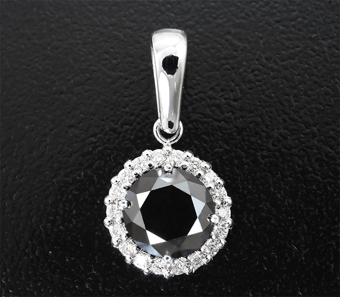 Кулон с черным 1,98 карата и бесцветными бриллиантами