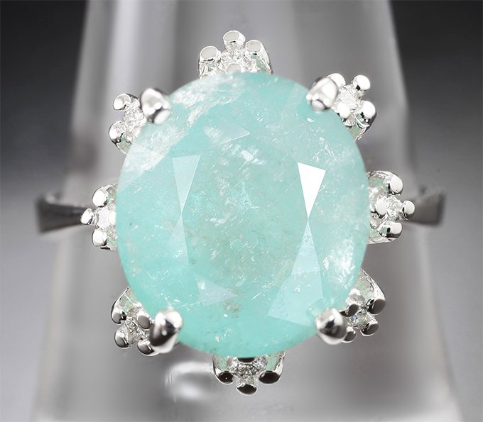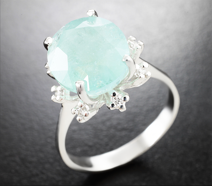 Кольцо с параиба турмалином 6,07 карата и бриллиантами