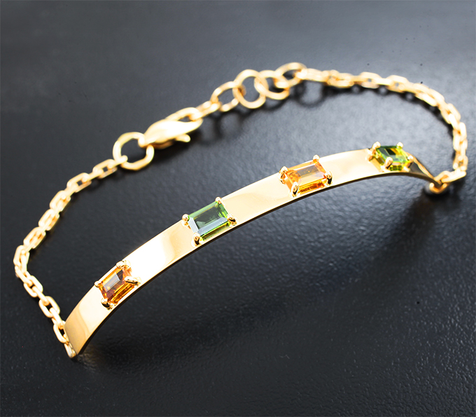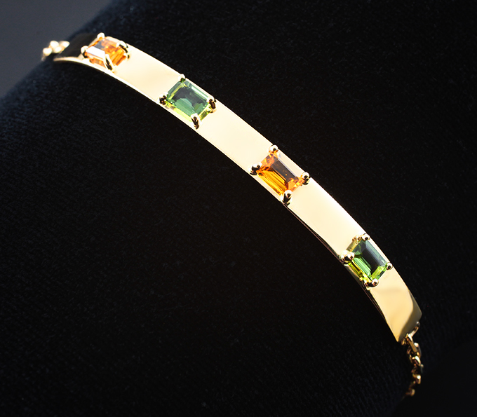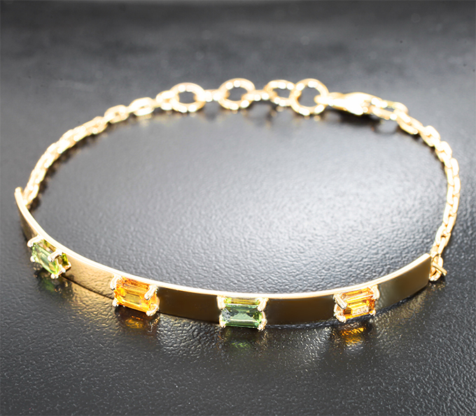 Вашему вниманию предлагается браслет из желтого золота 585 пробы с сапфирами! Длина браслета по внутренней окружности от 180 мм до 200 мм, ширина 5 мм. Вес изделия 7,83 г. Ниже приводятся ювелирные характеристики вставок.