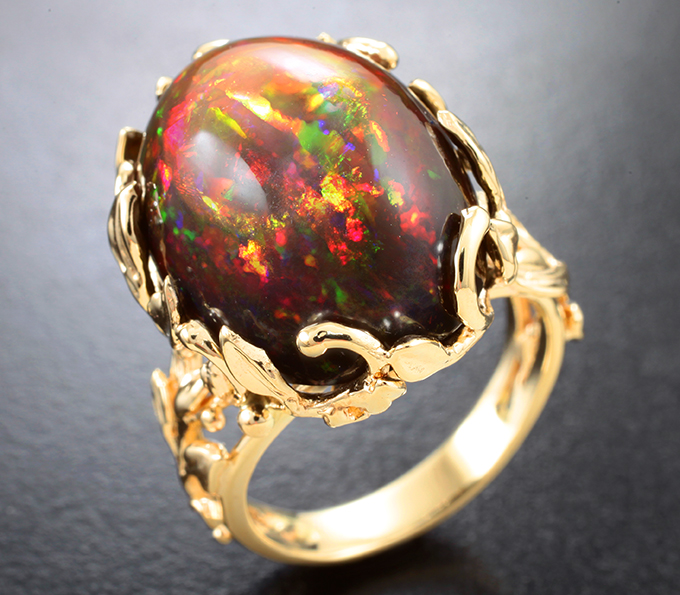 Кольцо с кристаллическим черным опалом 17,14 карата