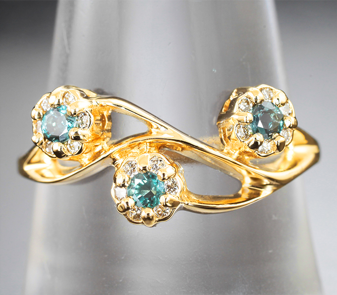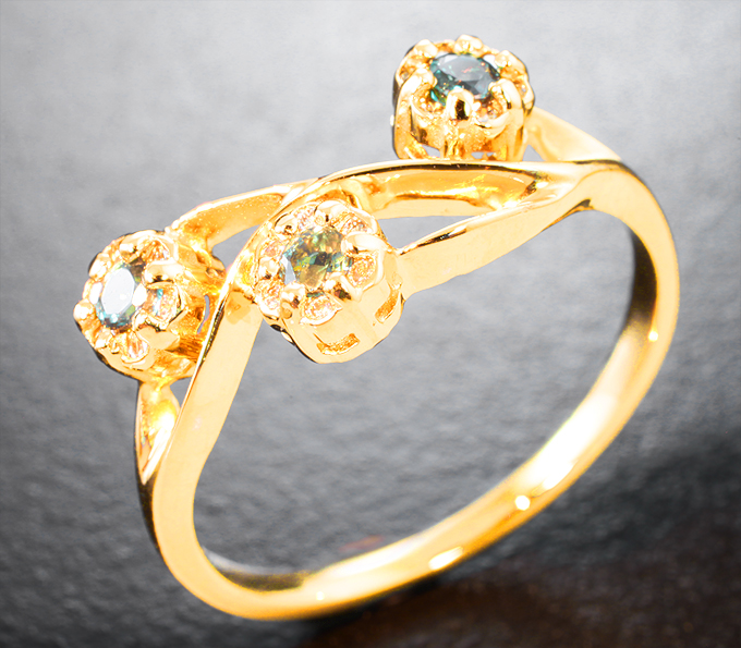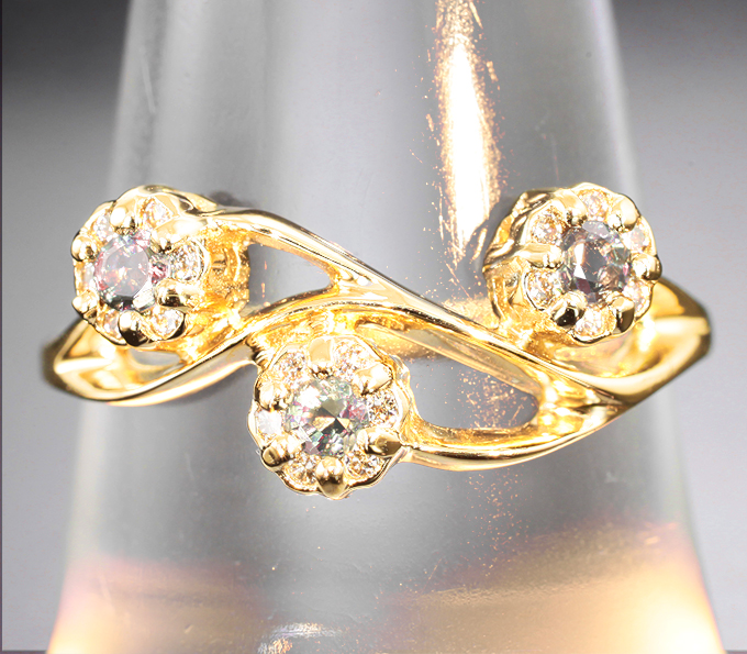 Кольцо с уральскими александритами 0,26 карата и бриллиантами
