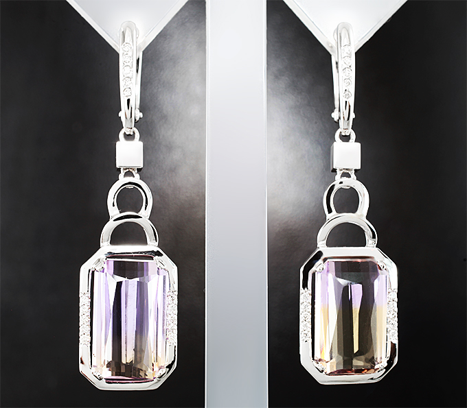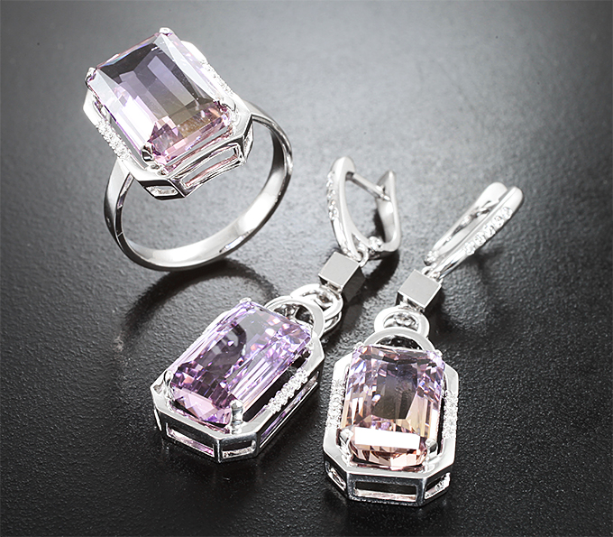 Вашему вниманию предлагается комплект (кольцо + серьги) из белого золота 585 пробы с чистейшими аметринами и бриллиантами! Диаметр дополнительной инкрустации 1,1 мм. Вес комплекта 16,37 г.