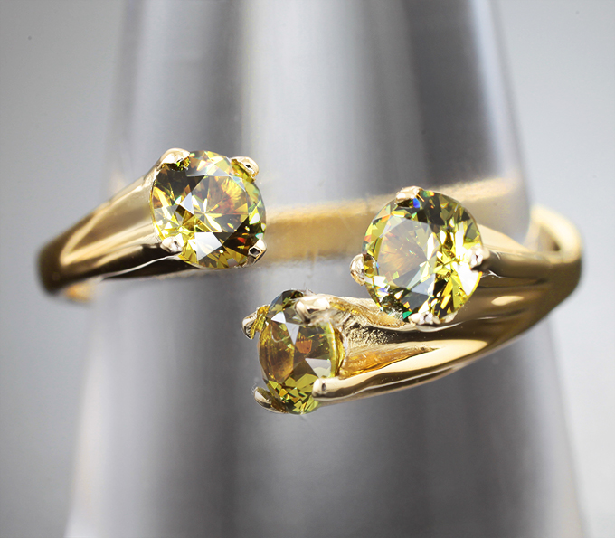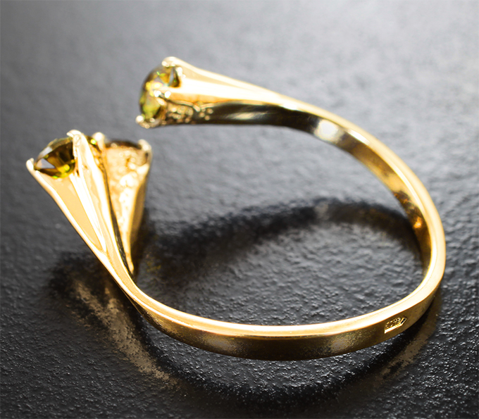Золотое кольцо с уральскими демантоидами 0,92 карата
