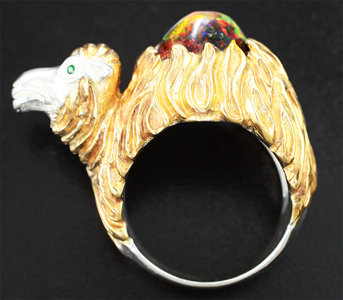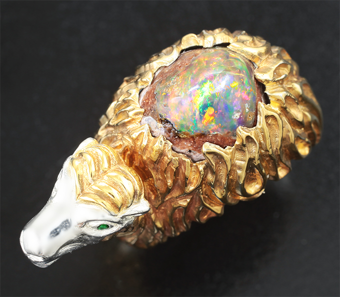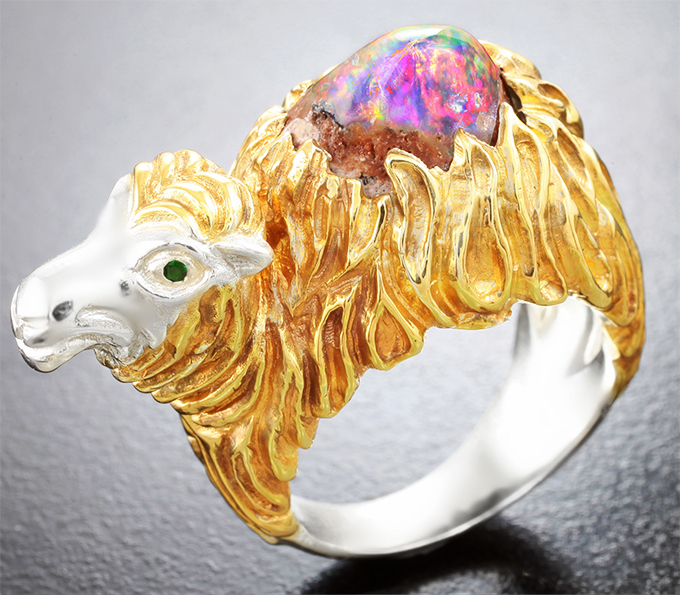 Кольцо с кабошоном опала 9,92 карата и цаворитами