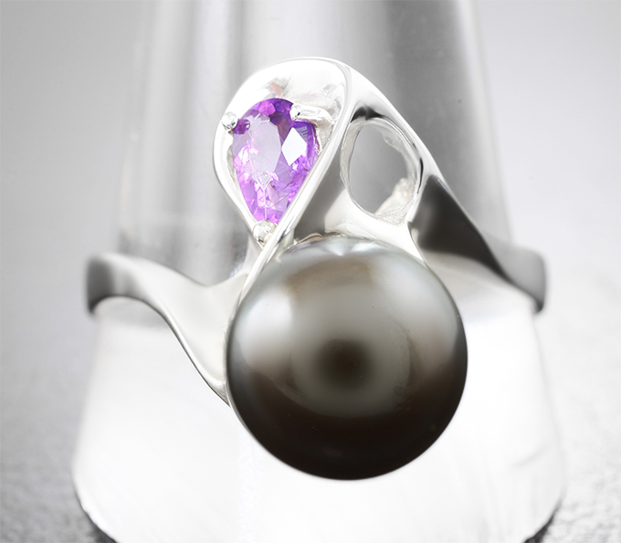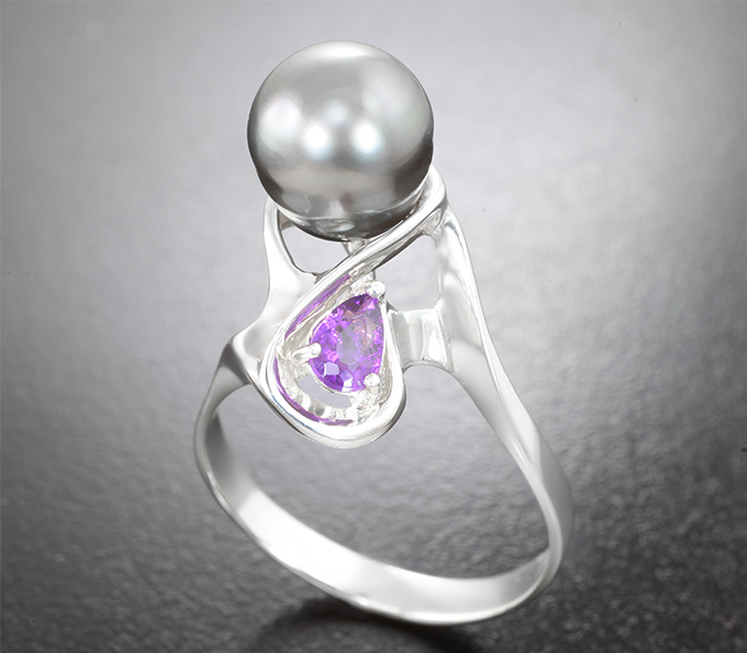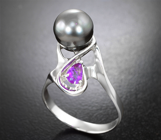 Кольцо с жемчужиной барокко 7,32 карата и редким ограненным хакманитом