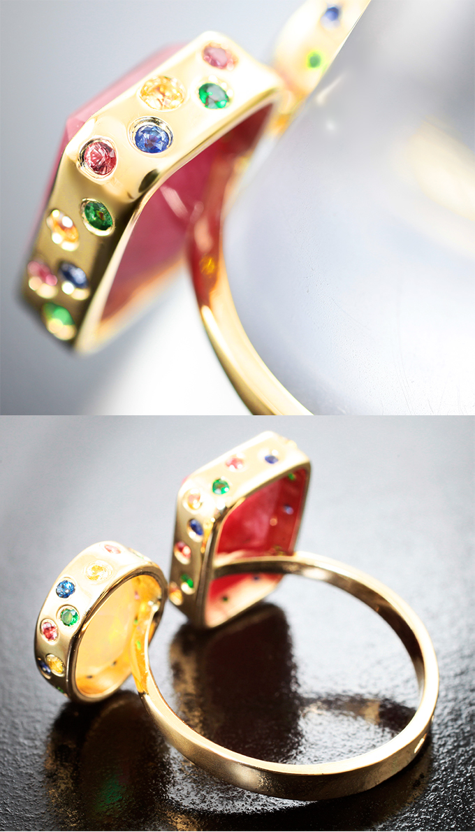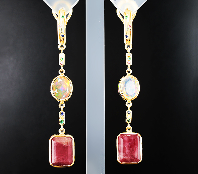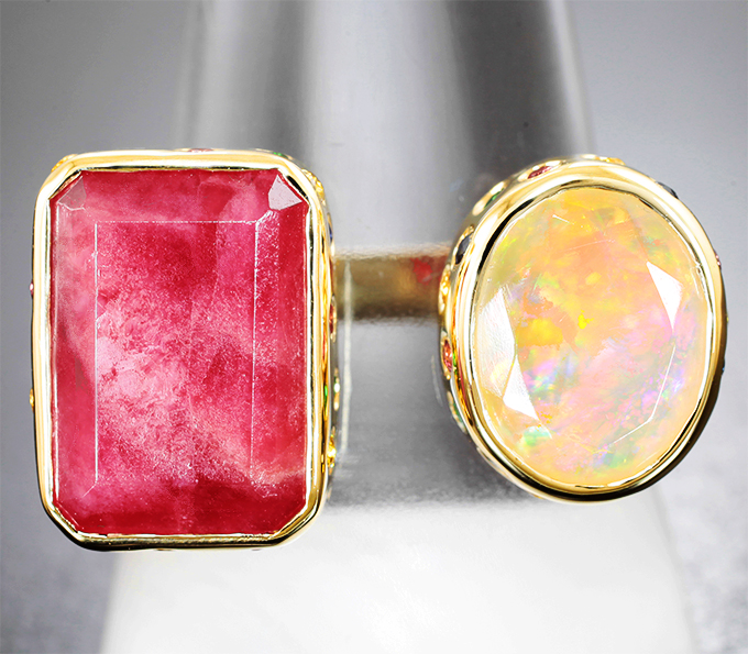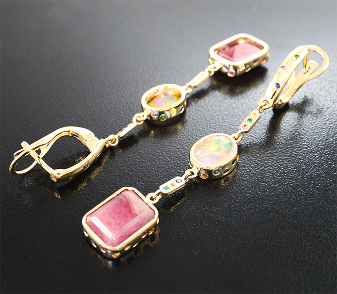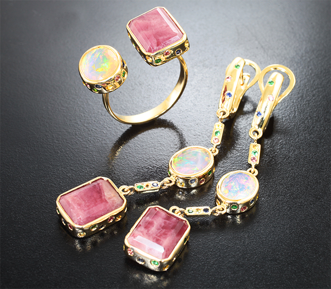 Комплект с родонитами 20,66 карата, ограненными эфиопскими опалами 4,13 карата, сапфирами и цаворитами