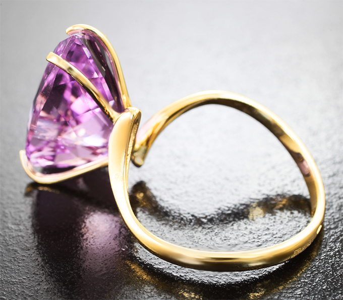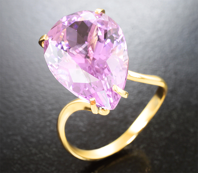 Вашему вниманию предлагается кольцо из желтого золота 585 пробы с насыщенным кунцитом топового цвета! Площадка 18 х 12 мм, высота 11 мм. Вес изделия 4,73 г. Размер 18. Ниже приводятся ювелирные характеристики вставки.