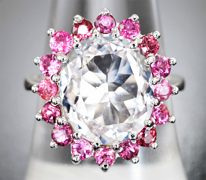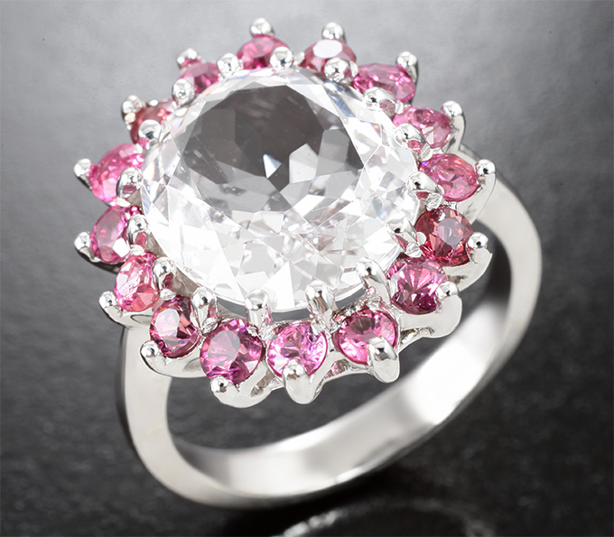 Кольцо с данбуритом высокой чистоты 5,53 карата и розовыми шпинелями