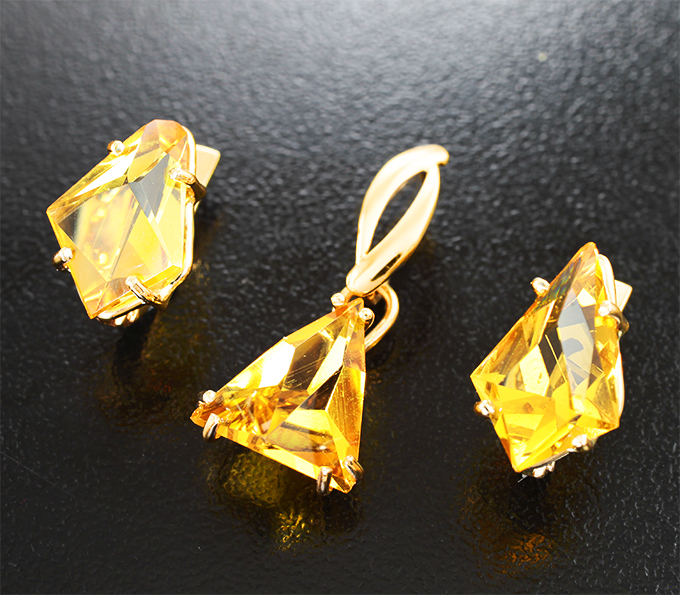Комплект с гелиодорами авторской огранки 8,6 карата