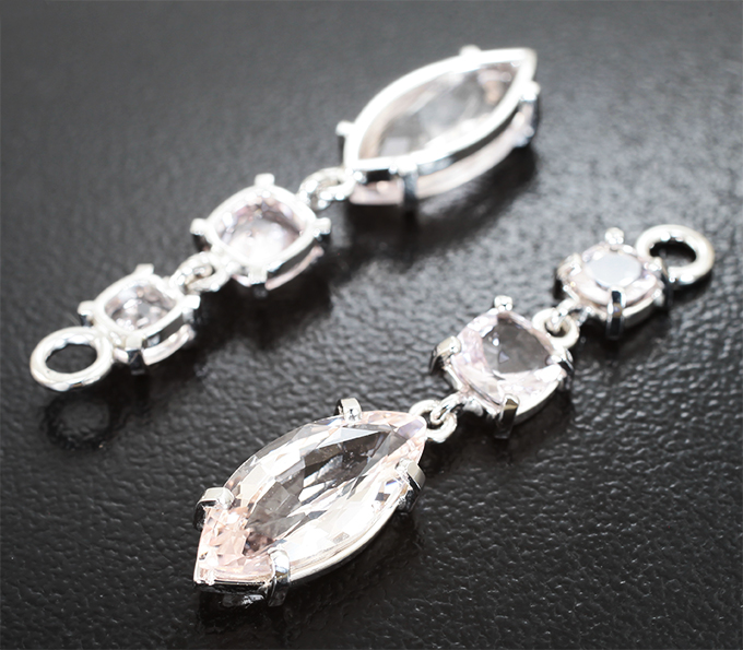 Вашему вниманию предлагаются подвесы для серег из белого золота 585 пробы с морганитами! Размеры изделия 34 х 7 мм. Вес пары 3,46 г. Ниже приводятся ювелирные характеристики вставок.