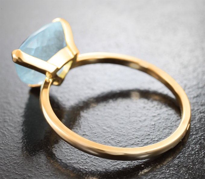 Вашему вниманию предлагается кольцо из желтого золота 750 пробы c насыщенным аквамарином! Площадка 12 х 10 мм, высота 6 мм. Вес изделия 2,51 г. Размер 18. Ниже приводятся ювелирные характеристики вставки.