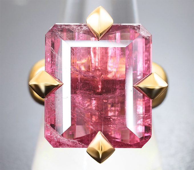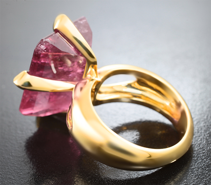 Кольцо с крупным ярко-розовым турмалином 23,84 карата