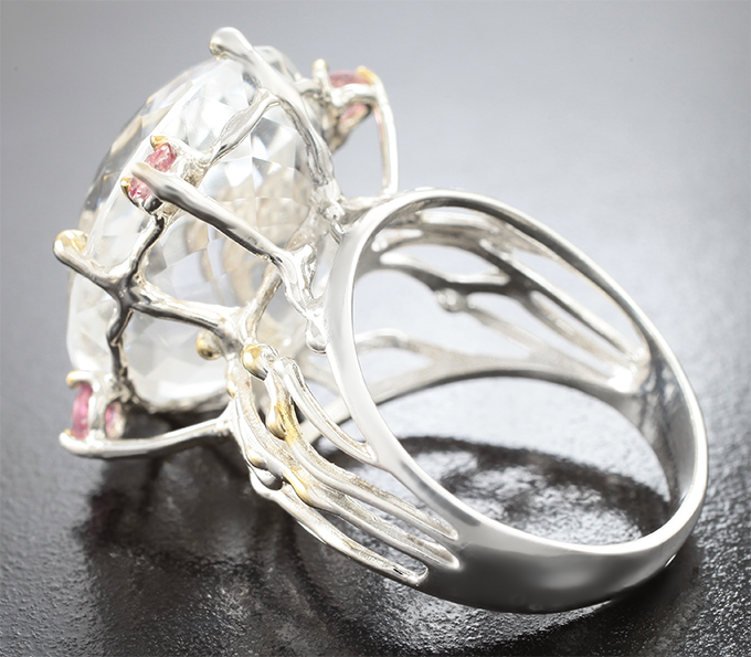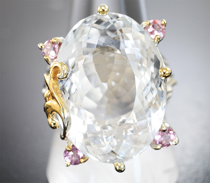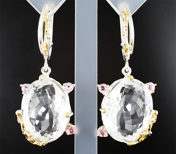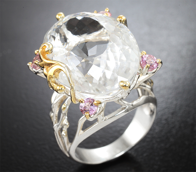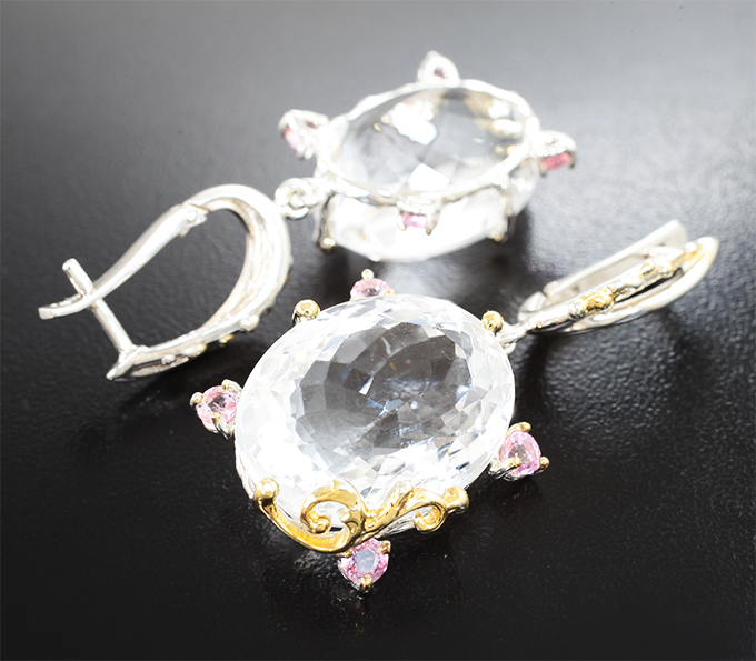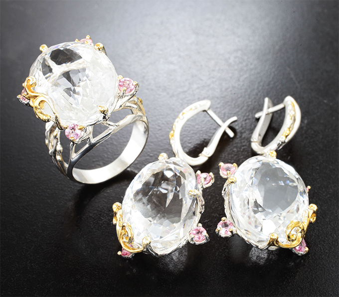 Комплект с крупным бесцветным кварцем 98,48 карата и розовыми сапфирами