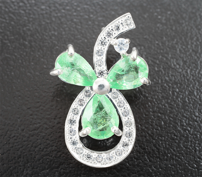 Кулон с цаворитами гранатами 2,06 карата и лейкосапфирами
