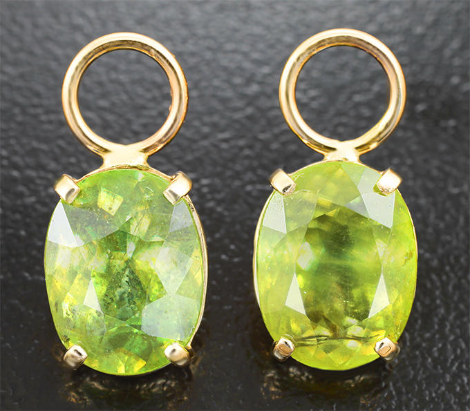 Подвесы для серег с сочно-зелеными сфенами 8,36 карата
