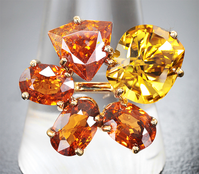 Комплект с сапфирами, гелиодорами, сфалеритом и спессартинами